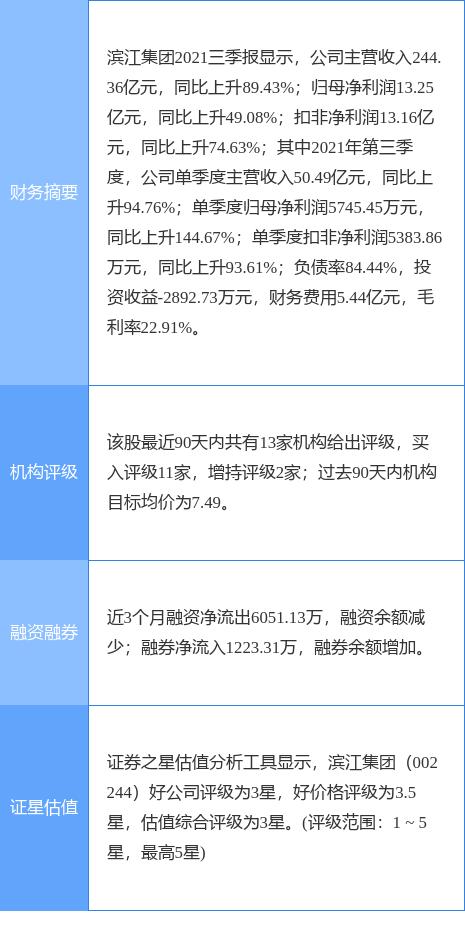 本文摘要:今日滨江集团(002244)涨9.99%,收盘报7.93元。2022年3月8日,中信建投证券研究员竺劲,黄啸天发布了对滨江集团的研报《聚焦浙江得地利之便,内功强大乘天时之风》,该研报对滨江集团给出“买入”评级,认为其目标价为8.4元,现价距… …