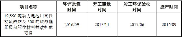 招股说明书显示,腾远钴业2015年扩产项目未取得环境影响评价审批即开工建设和未完成项目竣工环保验收即投产事项,已取得环境保护行政主管部门的环境影响评价审批批准和通过竣工环境保护验收、并由环保主管部门出具相关文件证明未因该等事项给予公司进行处罚。该等不规范事项已获得有效整改落实,不会对本次IPO申请造成实质性障碍。