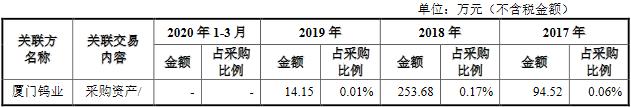 腾远钴业与厦门钨业还存在关联采购。2016年关联采购为向厦门钨业采购钴中间品809.44万元,占采购总额的比重为1.31%。2017年至2019年,关联交易内容为采购资产/接受服务,采购金额分别为94.52万元、253.38万元、14.15万元,占采购比例分别为0.06%、0.17%、0.01%。