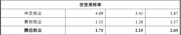 2014年至2020年,腾远钴业存货周转率分别为5.64、4.41、3.18、2.90、2.03、2.15和1.73。同期,华友钴业存货周转率分别为1.88、1.41、1.74、1.83、1.87、3.45和4.69;寒锐钴业存货周转率分别为2.69、2.68、2.00、1.27、1.37、1.26和1.33。