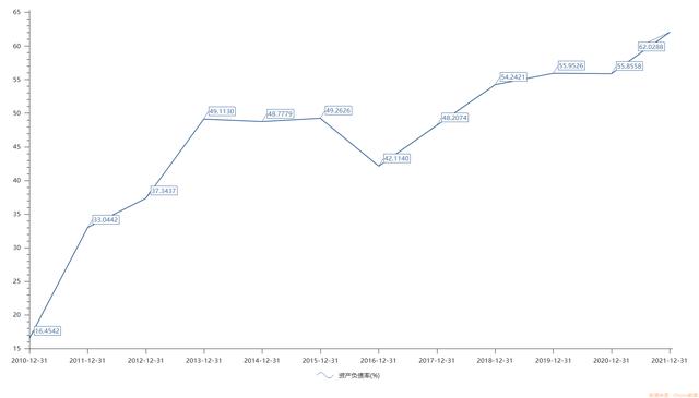 此外,随着长期借款的大幅增加,立讯精密2021年末的资产负债率也大幅上升至历史新高62.03%,较2020年末的55.86%增长了6.17个百分点。