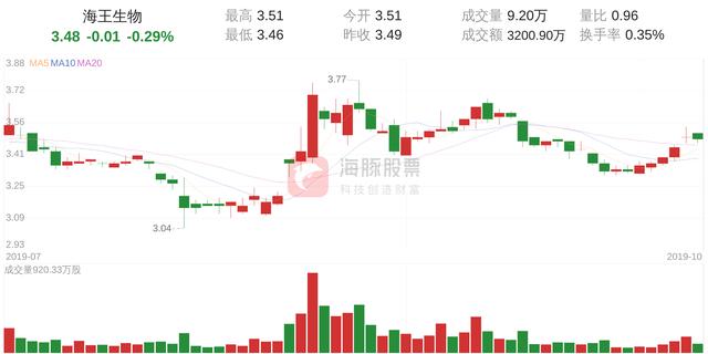 海王生物今日下跌0.29%,股价为3.48元,成交金额为3200.90万元,成交9万手,换手率为0.35%。