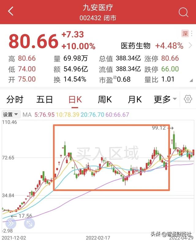 自去年11月初公布家用抗原产品获得美国政府和相关机构的订单以后,九安医疗从6元左右启动,最高涨到了99元,成为跨年度最耀眼的牛股。