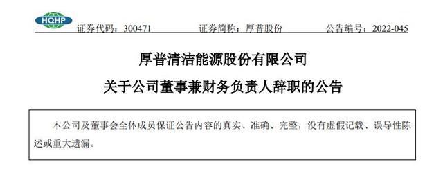 原文标题:厚普股份一季度业绩由盈转亏:公司财务负责人辞职 延期回复深交所年报问询函