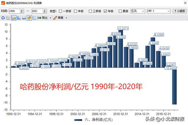吃的第二惊则是2020年哈药股份迎来了30年来的首次亏损,净利润亏损达到了10.45亿元。哈药股份成立于1991年,于1993年上市。都道是三十而立,可是哈药股份却在30岁遭遇了人生最大的滑铁卢,并以业绩爆雷的方式给我们惊吓。