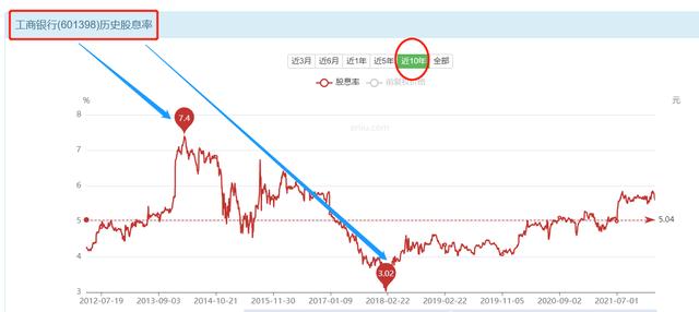 下图是工商银行近十年以来的股息率变化。