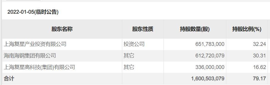 东财Choice数据显示,截至2022年1月5日,复星产业投资和复星高科技共持有海南矿业48.86%股份,对应市值114.82亿。