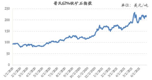从2021年上半年的收入构成来看,铁矿石营收占比超过 70%。国金研报显示,海南矿业拥有亚洲第一富铁矿石碌铁矿,资源储量 2.34 亿吨,平均品位 46.58%。原矿年产量 600 多万吨,成品矿产量 320 万吨。此外,2021年铁矿石价格维持在 130-180 美元/吨之间高位区间震荡,保障了公司稳定盈利。