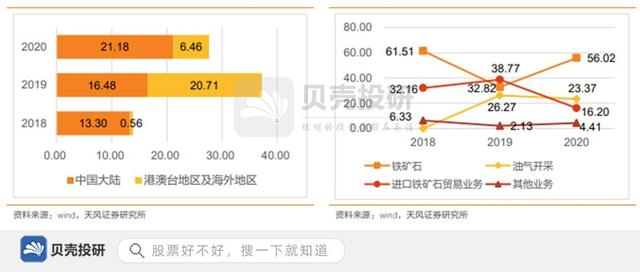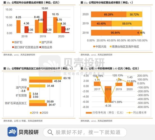 2020年公司铁矿石产量311.87万吨,同比上升21.47%、石油产量302.13万桶当量,同比上升0.95%;铁矿石销量309.31万吨,同比上升26.42%、石油销量255.72万桶当量,同比下降1.88%。