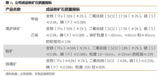 公司具备采矿、运输、破碎、筛分、选矿、尾矿回收等铁矿石综合生产能力。公司铁矿石业务主要产品为铁矿石产品,包括块矿、粉矿和铁精粉。铁矿石产品的主要用于提供给钢铁企业冶炼成生铁和钢材。公司铁矿石产品呈高硅、低铝、低磷等特点,是合理搭配高炉炉料结构的首选酸性配料。