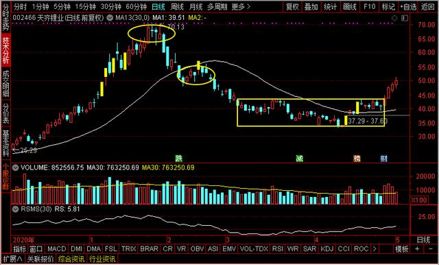 从走势上看,天齐锂业,在近期突破了之前的日线横盘整理阶段,均线向上,价格也持续在均线上方运行,进入上升阶段。