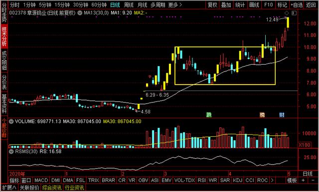 目前来看,章源钨业日线已经不存在阻力区域了。