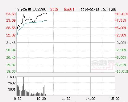 金融界网站2月18日讯 今日圣农发展开盘报21.7元,截止10:39分,该股涨10.01%报23.63元,封上涨停板