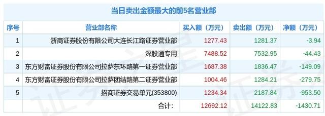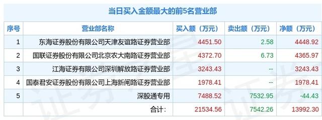 从龙虎榜公布的当日买卖数据来看,深股通买入7488.52万元,卖出7532.95万元,净卖出-44.43万元