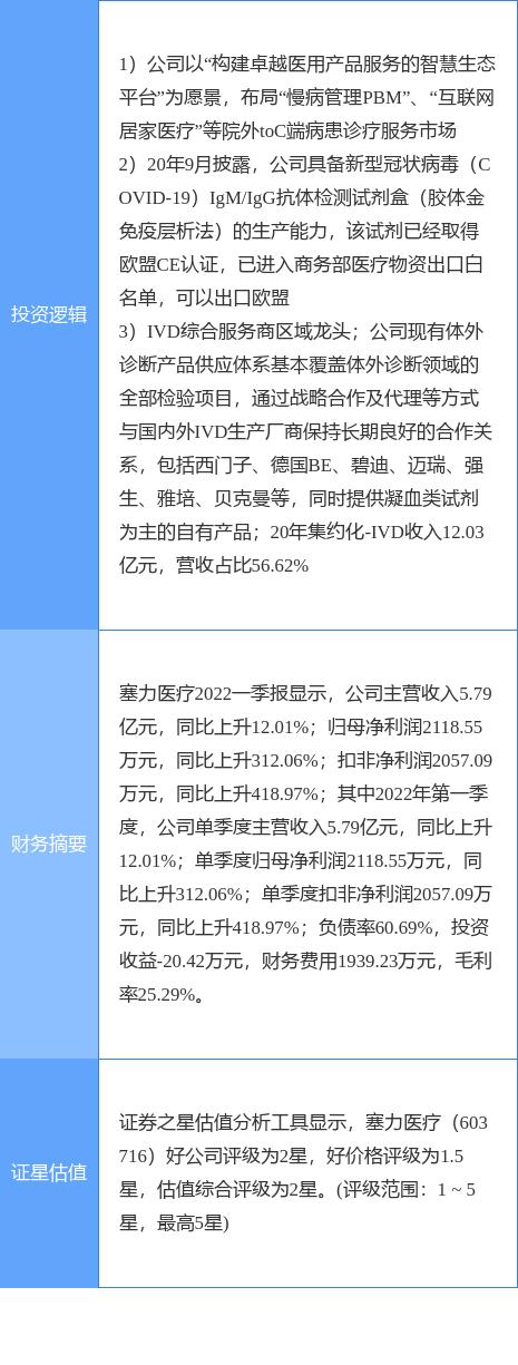 5月6日塞力医疗涨停分析:体外诊断,医疗信息化,新冠检测概念热股