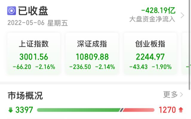 5月6日,三大指数早盘均大幅低开,随后全天保持弱势震荡,沪指一度失守3000点。截止收盘沪指跌2.16%,深成指跌2.14%,创业板指跌1.90%。