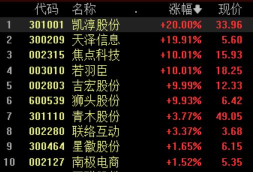 凯淳股份、天泽信息、若羽臣、焦点科技、返利科技、吉宏股份等十余股集体封板