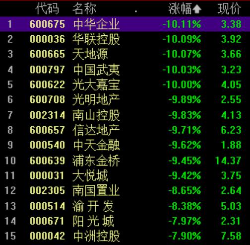中国武夷、天地源、光大嘉宝跌停,外高桥、南国置业、信达地产等跟跌。