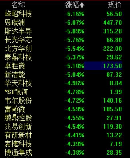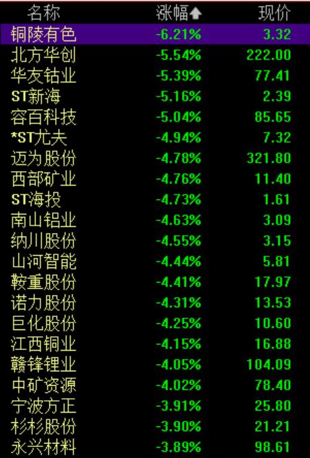 华友钴业、北方华创、鞍重股份、国轩高科、杉杉股份、永兴材料等跟跌。