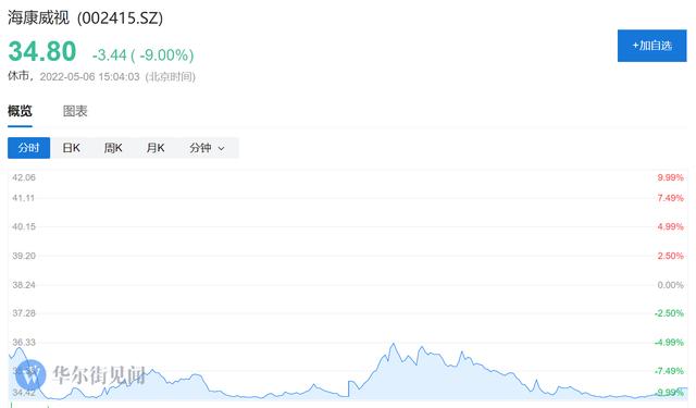 个股方面,海康威视延续昨日下跌,一度触及跌停,后有所回升,截止收盘跌9%。