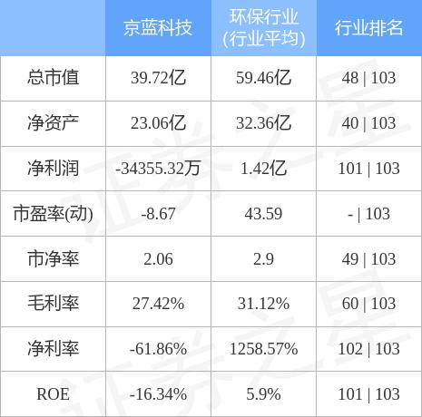 京蓝科技主要指标及行业内排名如下: