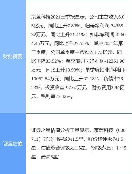 京蓝科技(000711)个股概况: