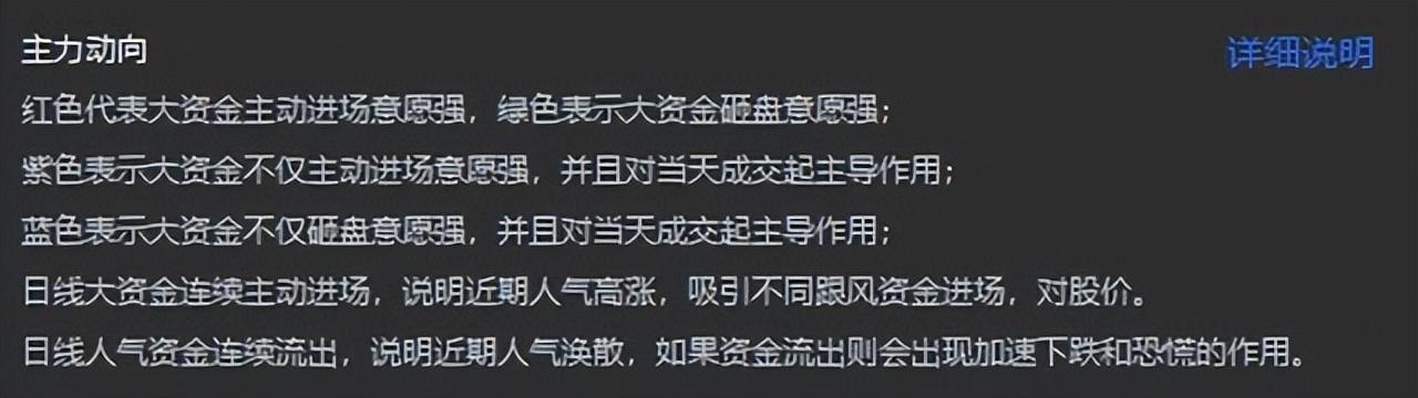 理解了市场中什么样的资金会推动股价上涨后,我们来看一下主力动向这个指标。